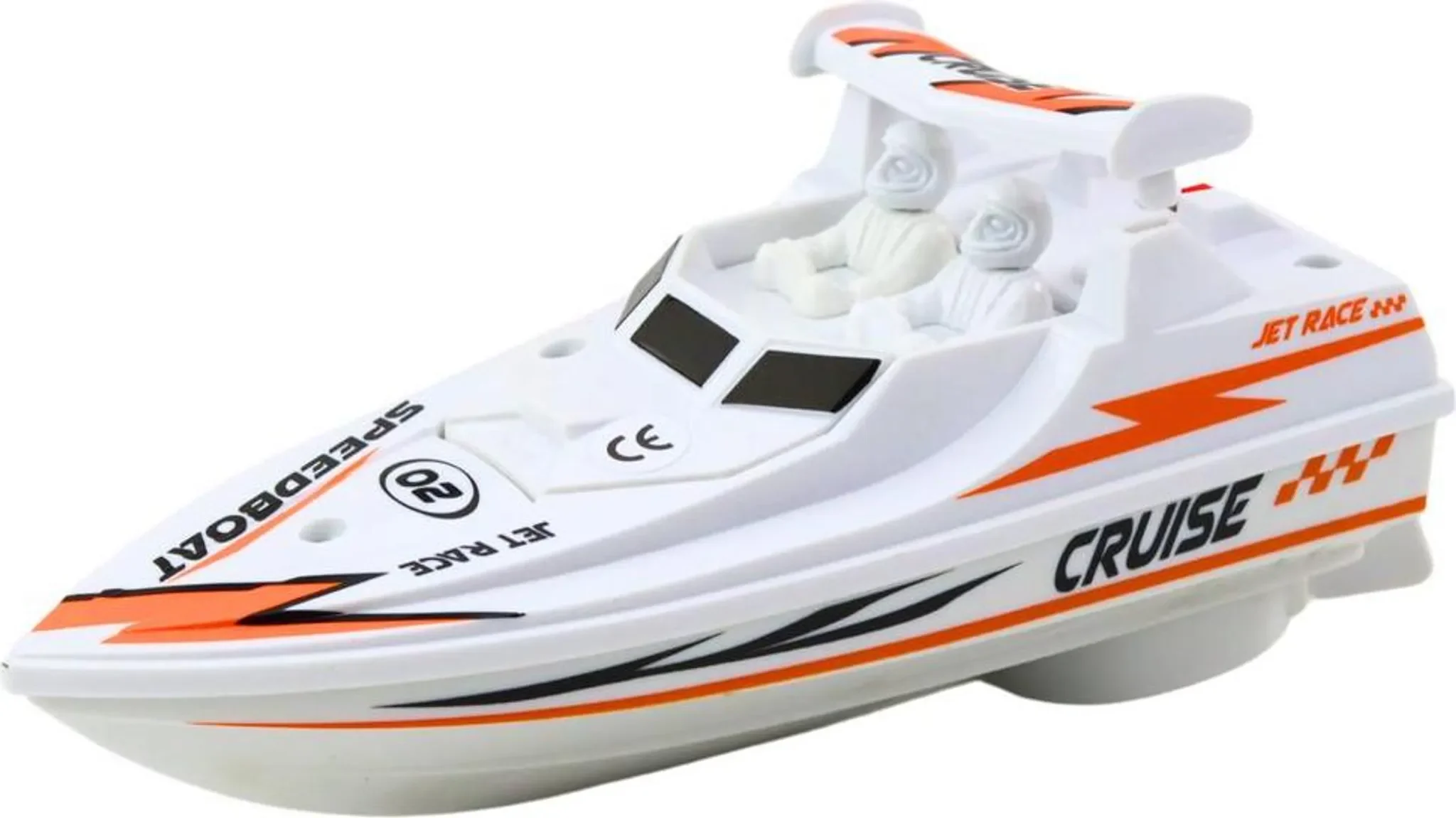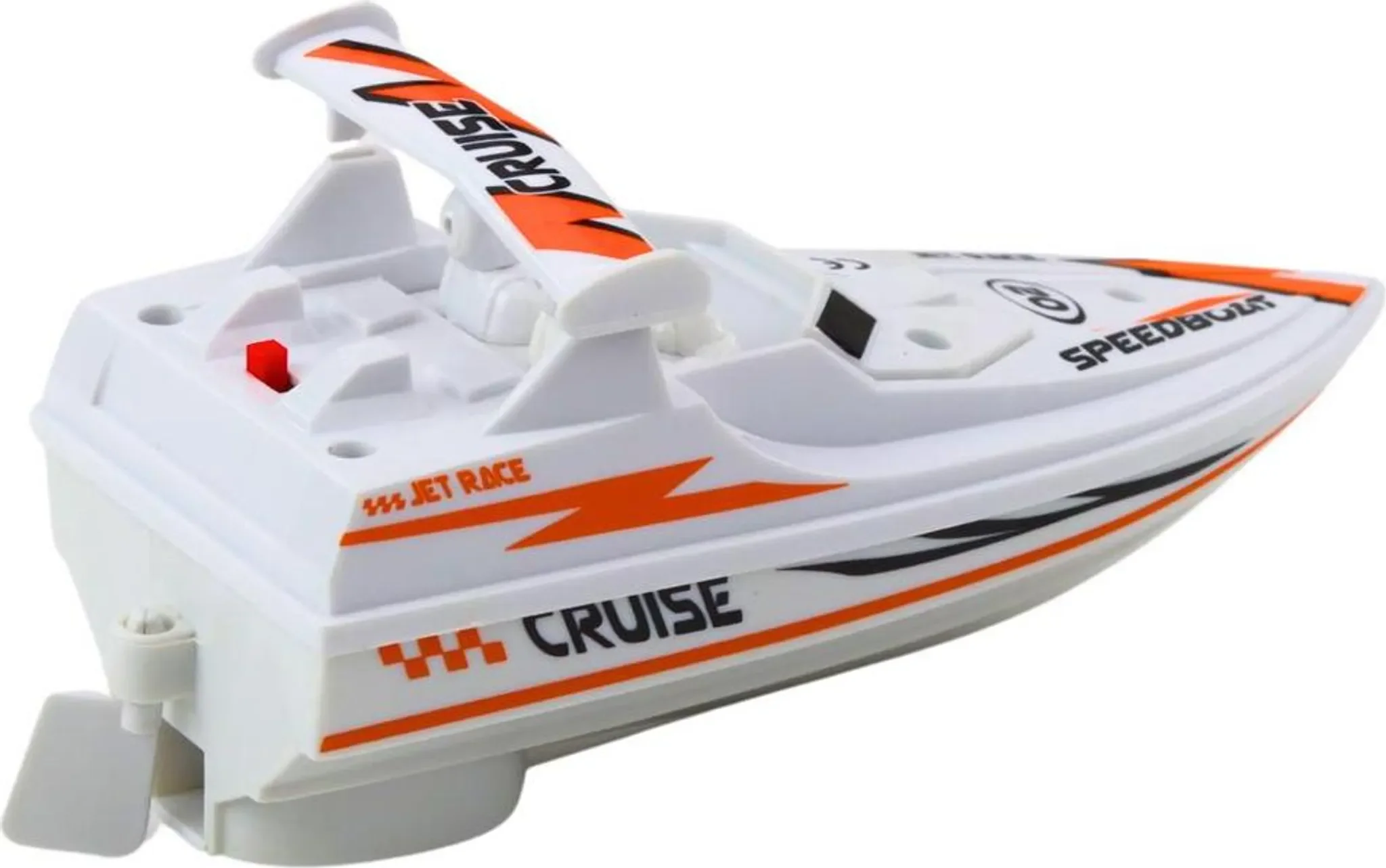 Dieses kompakte Motorboot sorgt für actionreichen Spielspaß im Wasser. Gefertigt aus robustem Kunststoff und gestaltet in schlichtem Weiß mit modernen orange-schwarzen Akzenten, ist es ideal für Badewanne, Planschbecken oder ruhige Gewässer.