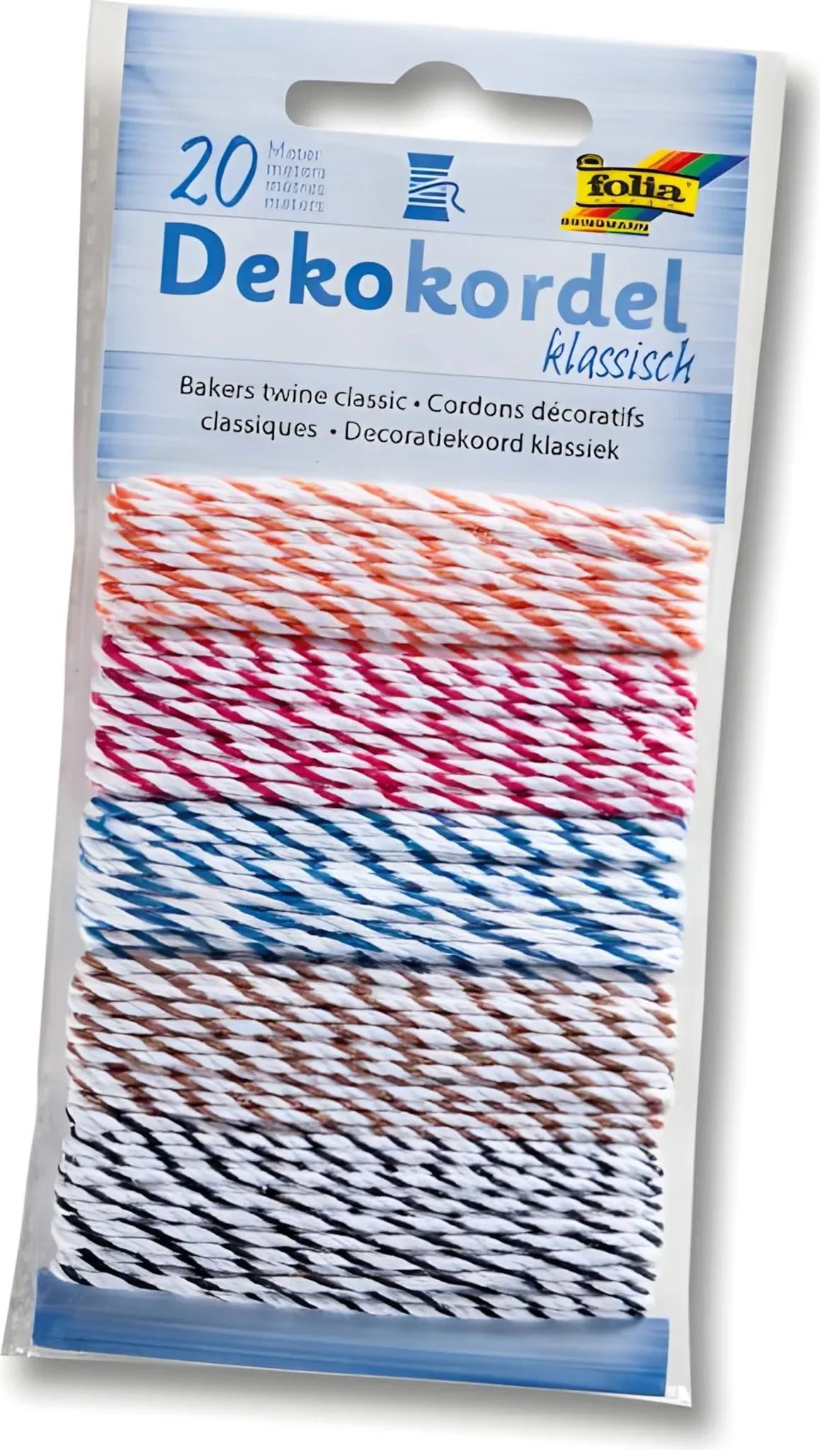 | Im Paket | 5 Rollen Dekokordel à 4,0 m in verschiedenen Farben |