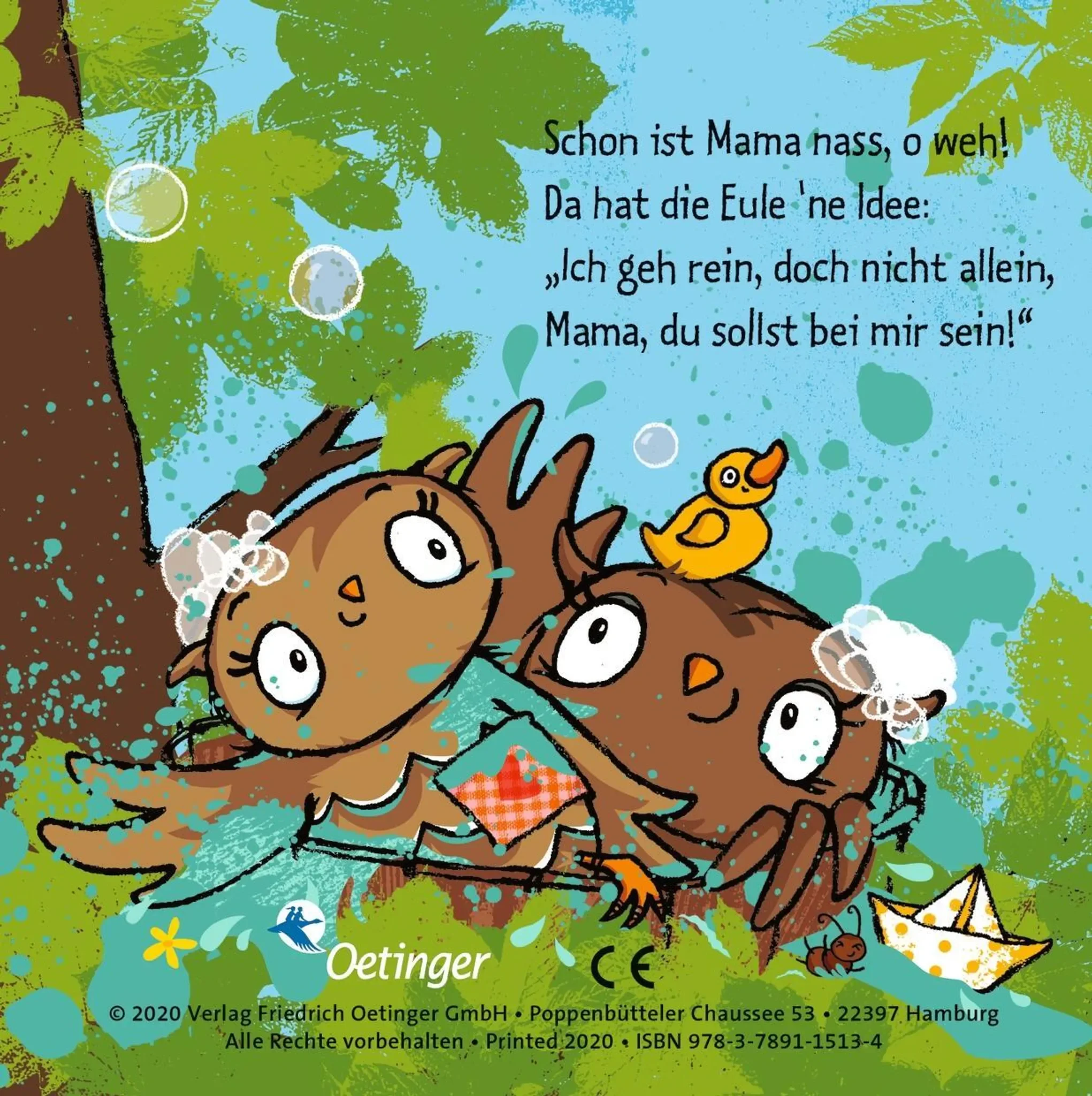 Mit viel Badeschaum, einer Quietsche-Ente und einer lustigen Wasserspritze wird das Baden Schritt für Schritt zum Vergnügen. Gemeinsam mit Mama entdeckt die kleine Eule, dass Planschen zusammen gleich doppelt Spaß macht. Das wasserfeste Buch macht die Badezeit zu einem interaktiven und fröhlichen Erlebnis.
