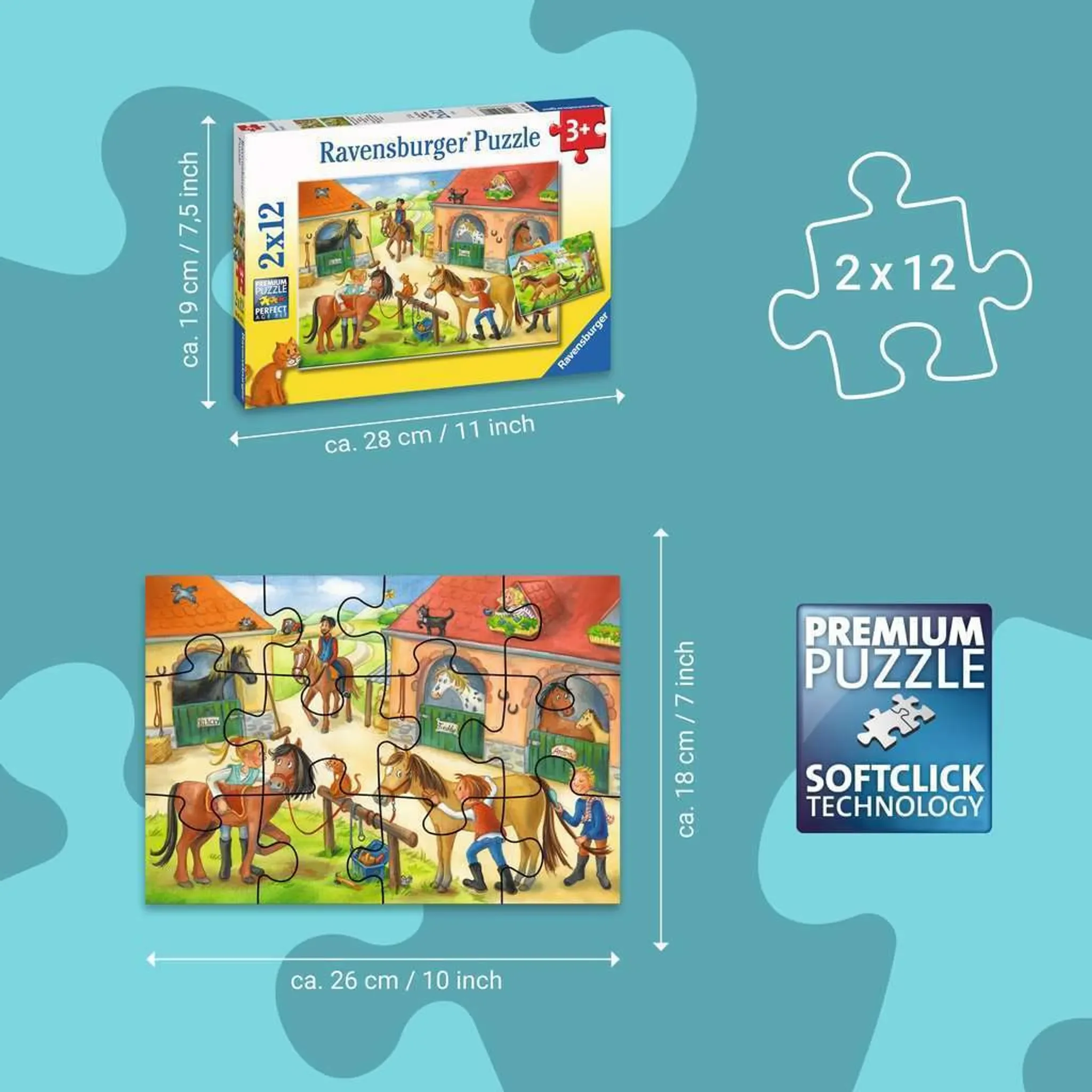 Produktinformationen "Ferien auf dem Pferdehof – Kinderpuzzle 2 × 12 Teile"