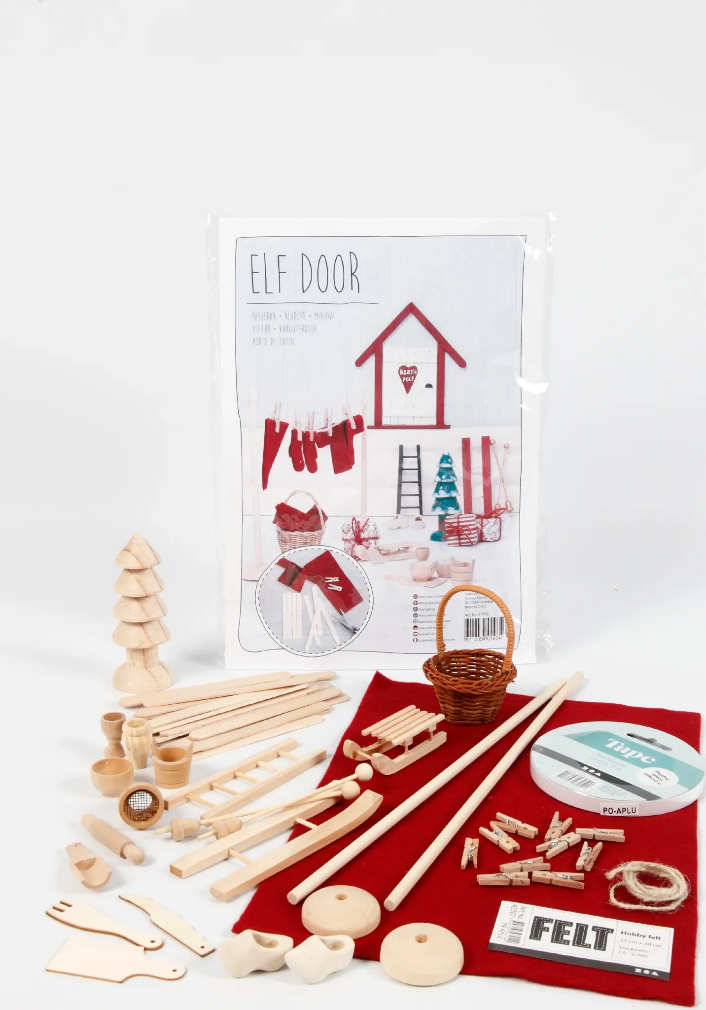 Mit diesem Bastelset für eine Gnome- bzw. Wichteltür entsteht im Handumdrehen eine kleine, märchenhafte Miniaturwelt. Die zahlreichen Holz- und Filzelemente laden dazu ein, eine individuelle Szene rund um eine geheimnisvolle Wichteltür zu gestalten – ideal für die Winter- und Weihnachtszeit.