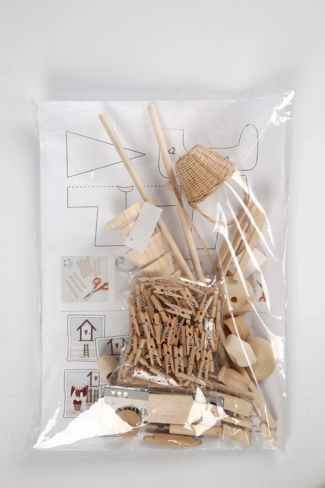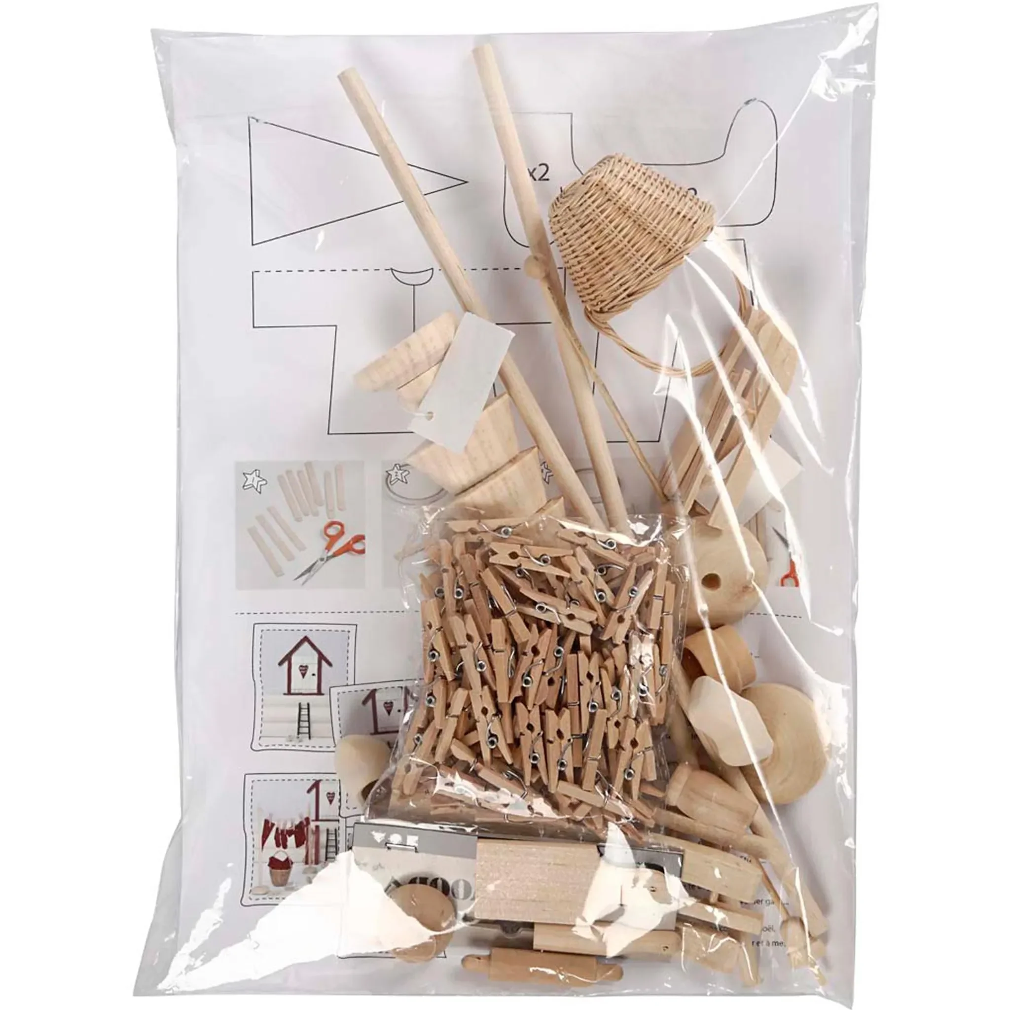 | Im Paket | Schlitten, Ski, Stöcke, Holzschuhe, Leiter, Weihnachtsbaum, Korb, Werkzeuge, Kleidung, Wäscheklammern, Eisstiele, Filz, Kordel, doppelseitiges Klebeband |