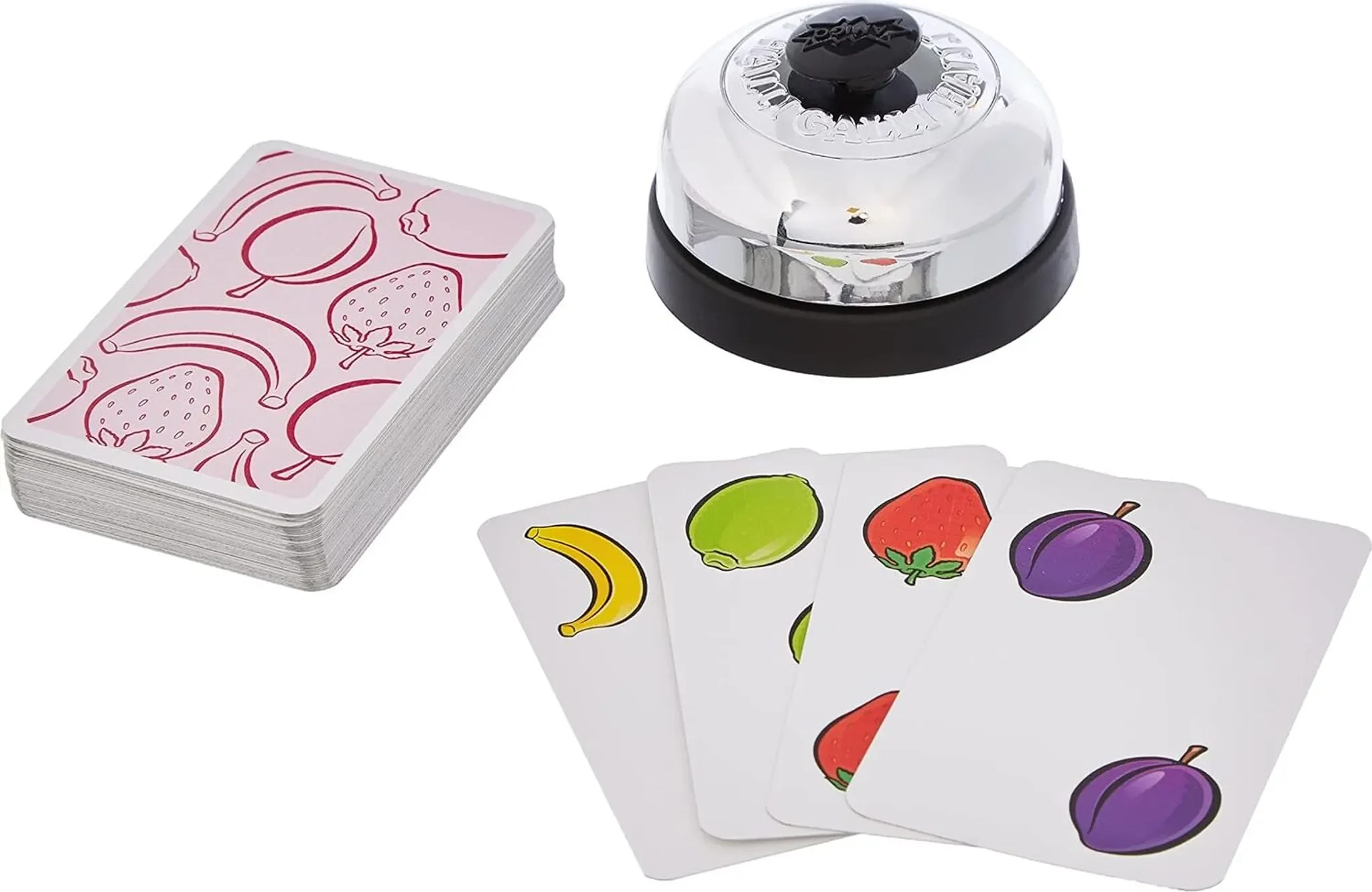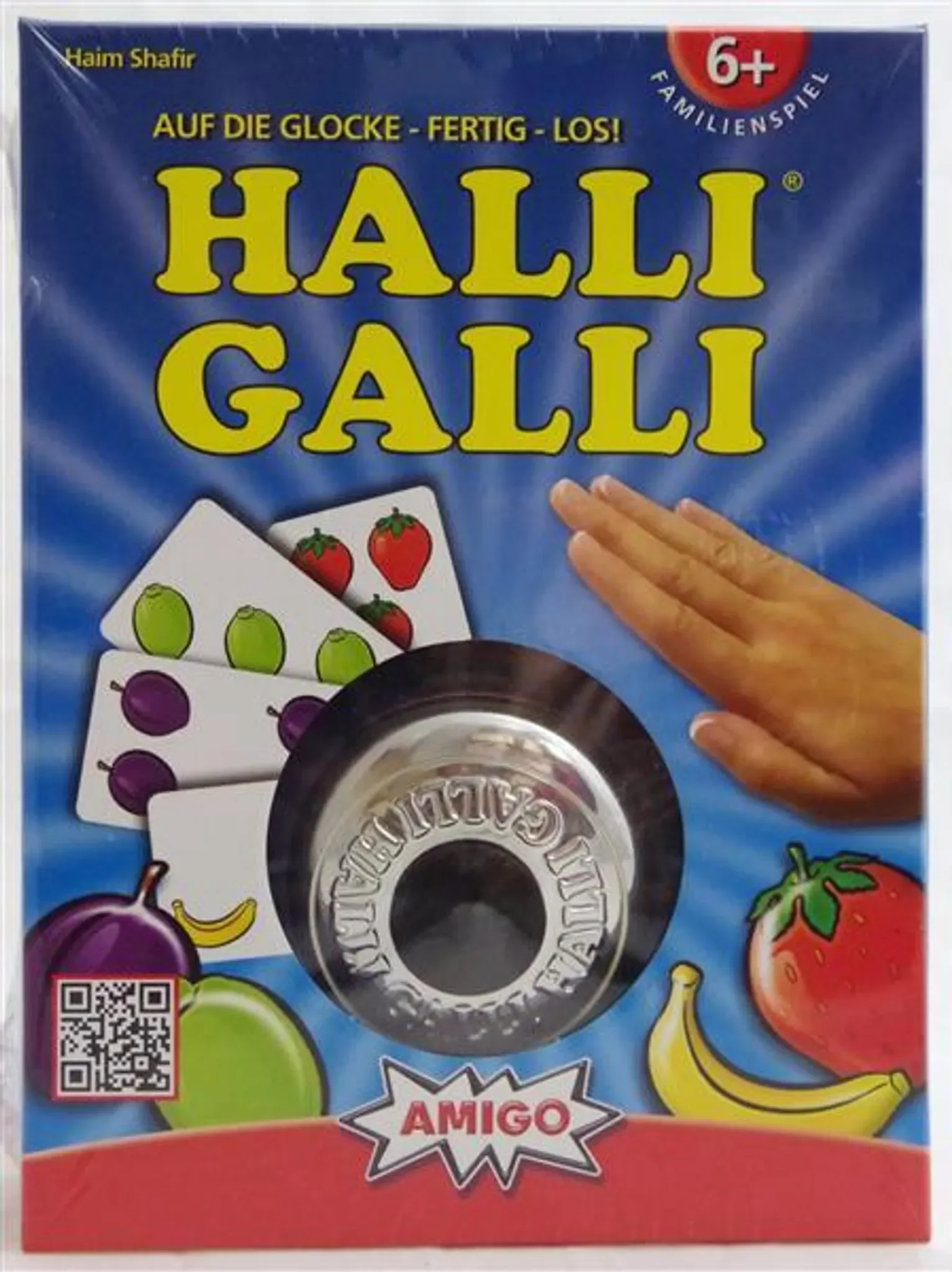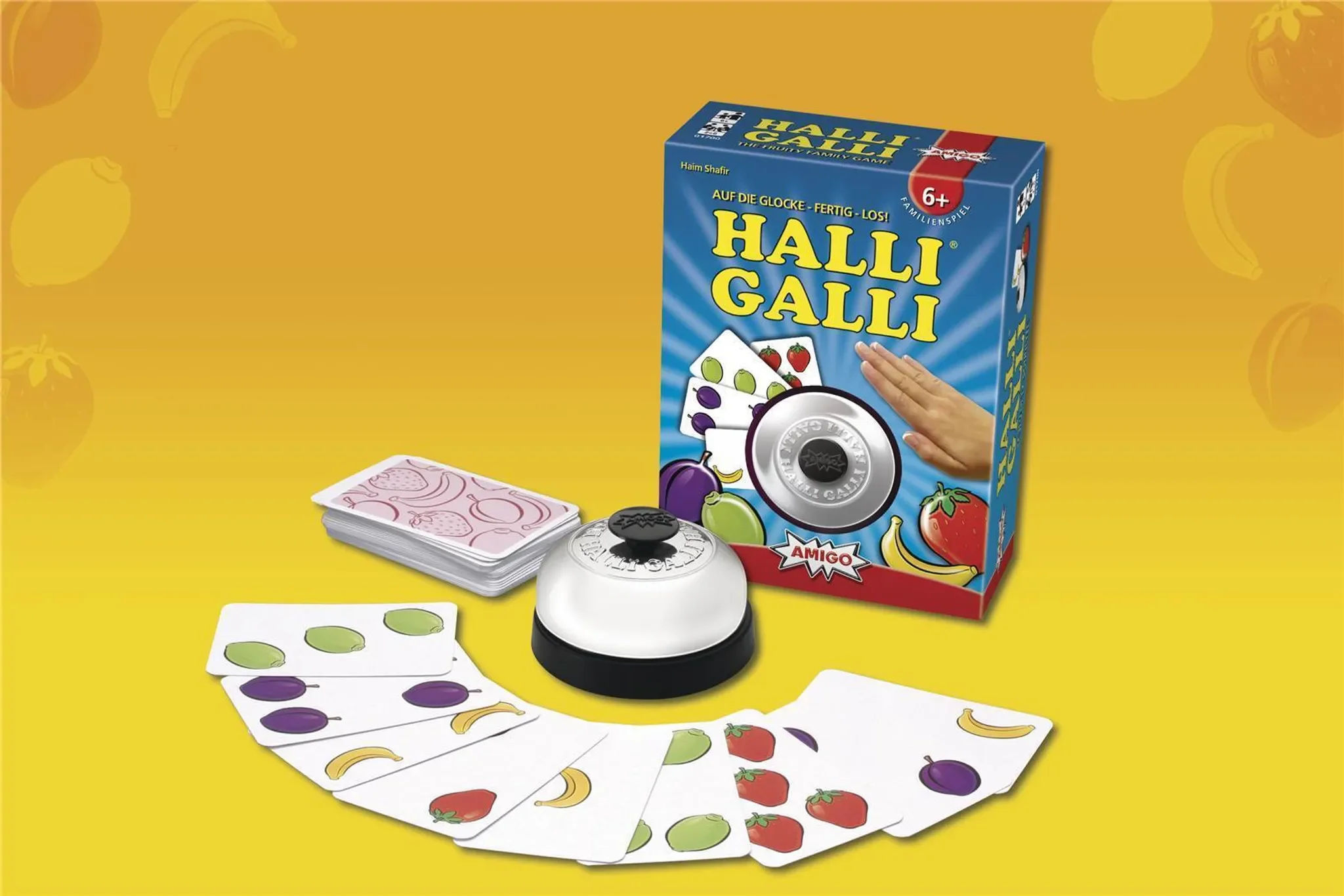 Halli Galli ist ein temporeiches Kartenspiel, bei dem ein gutes Auge und schnelle Reaktionen entscheiden. Reihum decken die Spieler Karten mit fruchtigen Motiven auf. Sobald auf allen offenen Karten zusammen genau fünf gleiche Früchte zu sehen sind, heißt es blitzschnell reagieren und auf die Glocke schlagen.