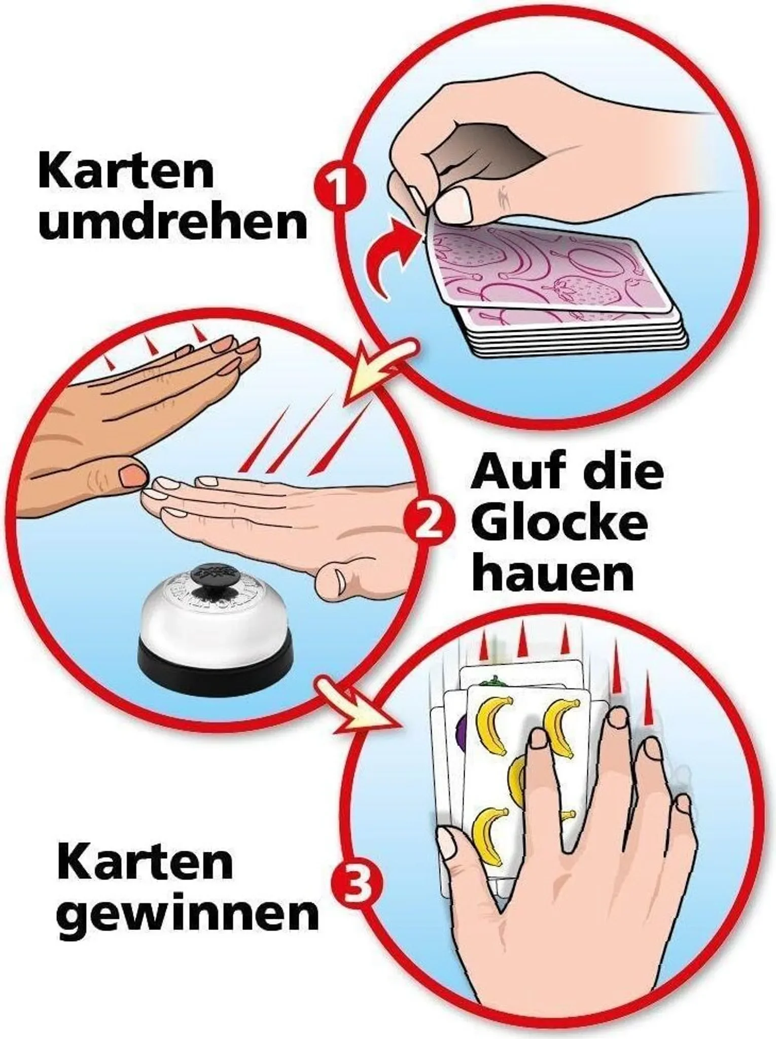 | Im Paket | 56 × Spielkarten, 1 × Glocke, 1 × Spielanleitung |