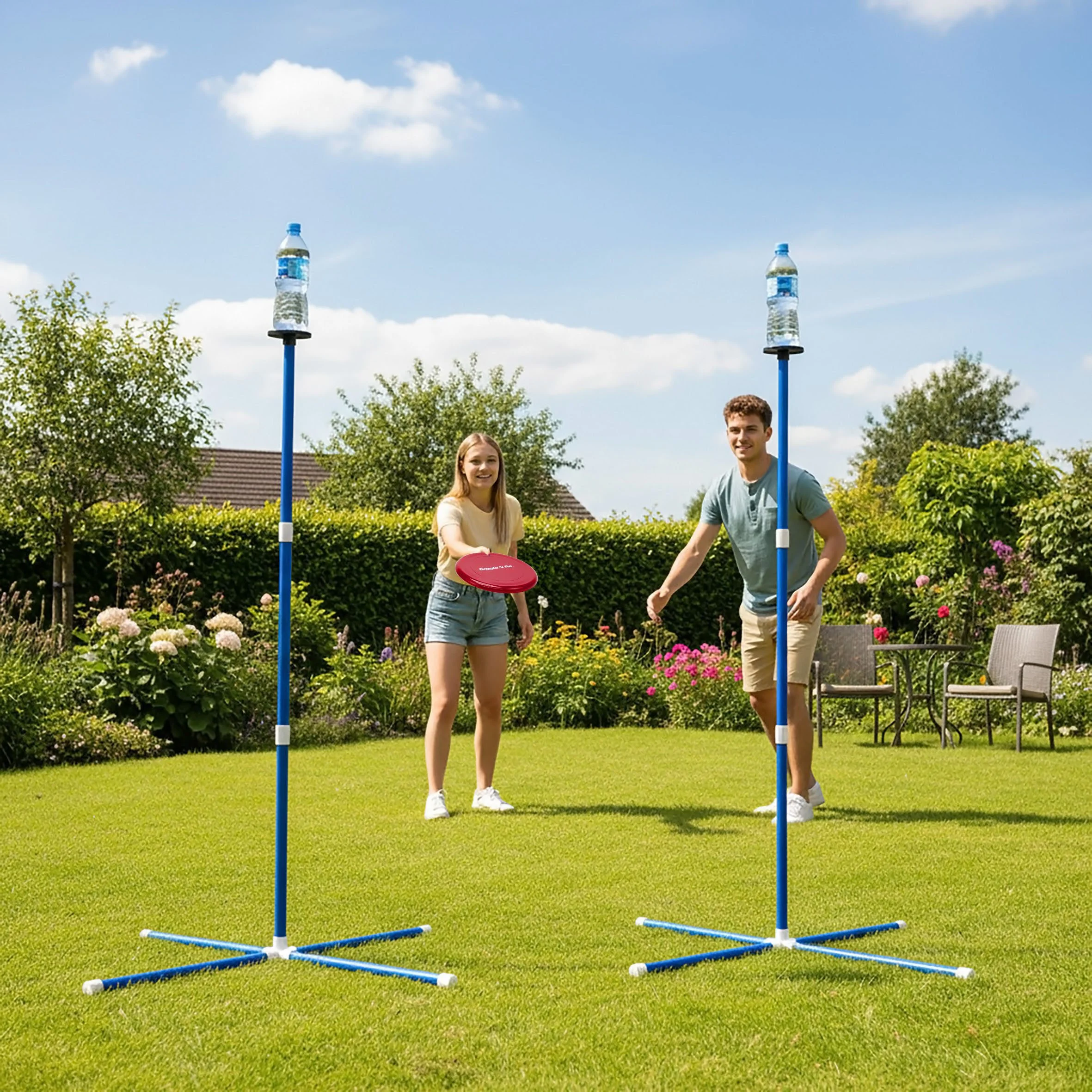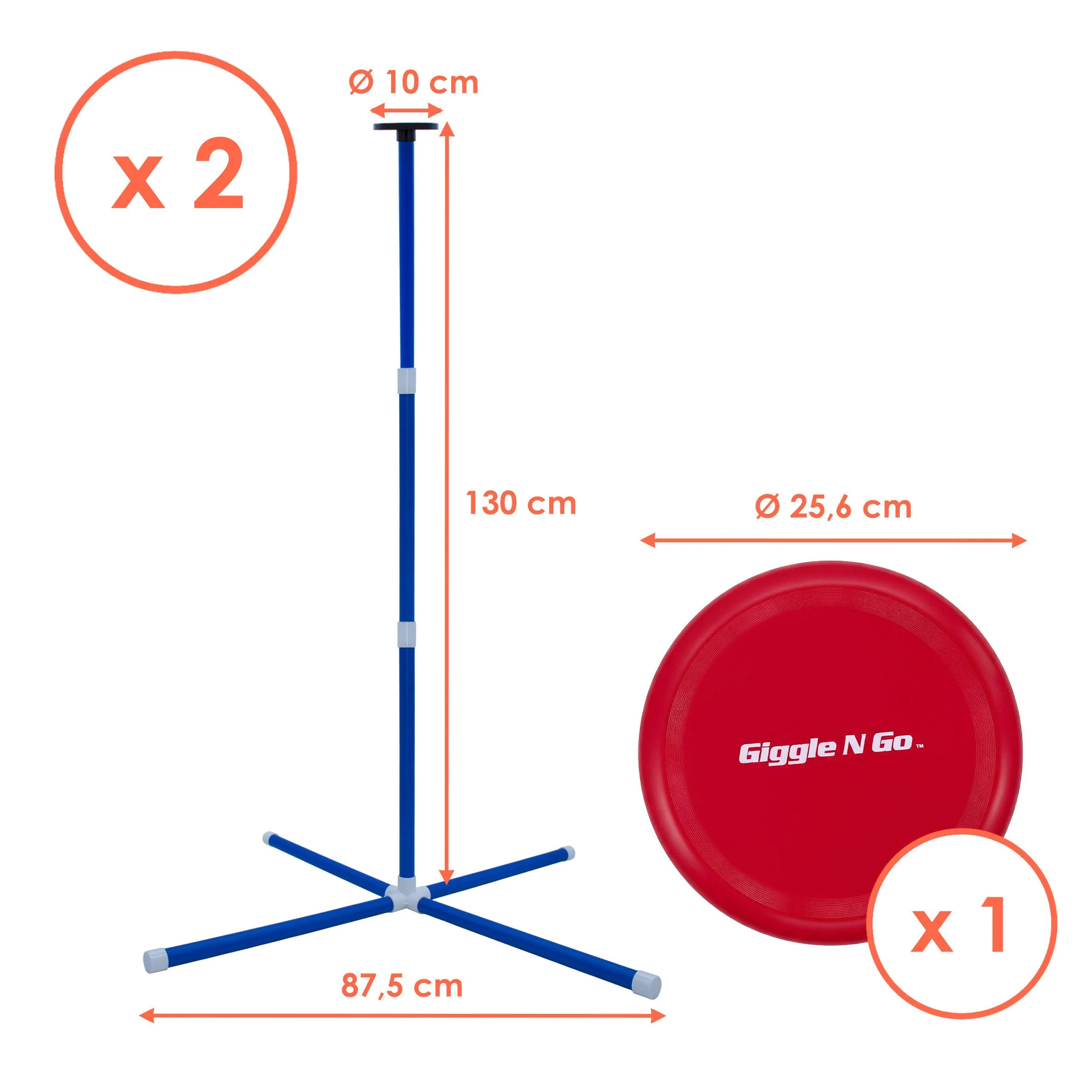 Das Knock-Off Disc Wurfspiel ist ein spannendes Geschicklichkeitsspiel, das sowohl drinnen als auch draußen für viel Spaß sorgt. Es besteht aus zwei Wurfsäulen und einer Frisbee, die es zu einem idealen Spiel für den Garten, den Park oder für Partys macht. Mit den mitgelieferten Metall-Heringen kann das Spiel schnell und einfach aufgebaut und stabilisiert werden. Perfekt geeignet für Kinder ab 6 Jahren und eine tolle Möglichkeit, die Zielgenauigkeit, Geschicklichkeit und Reaktionsfähigkeit zu fördern.