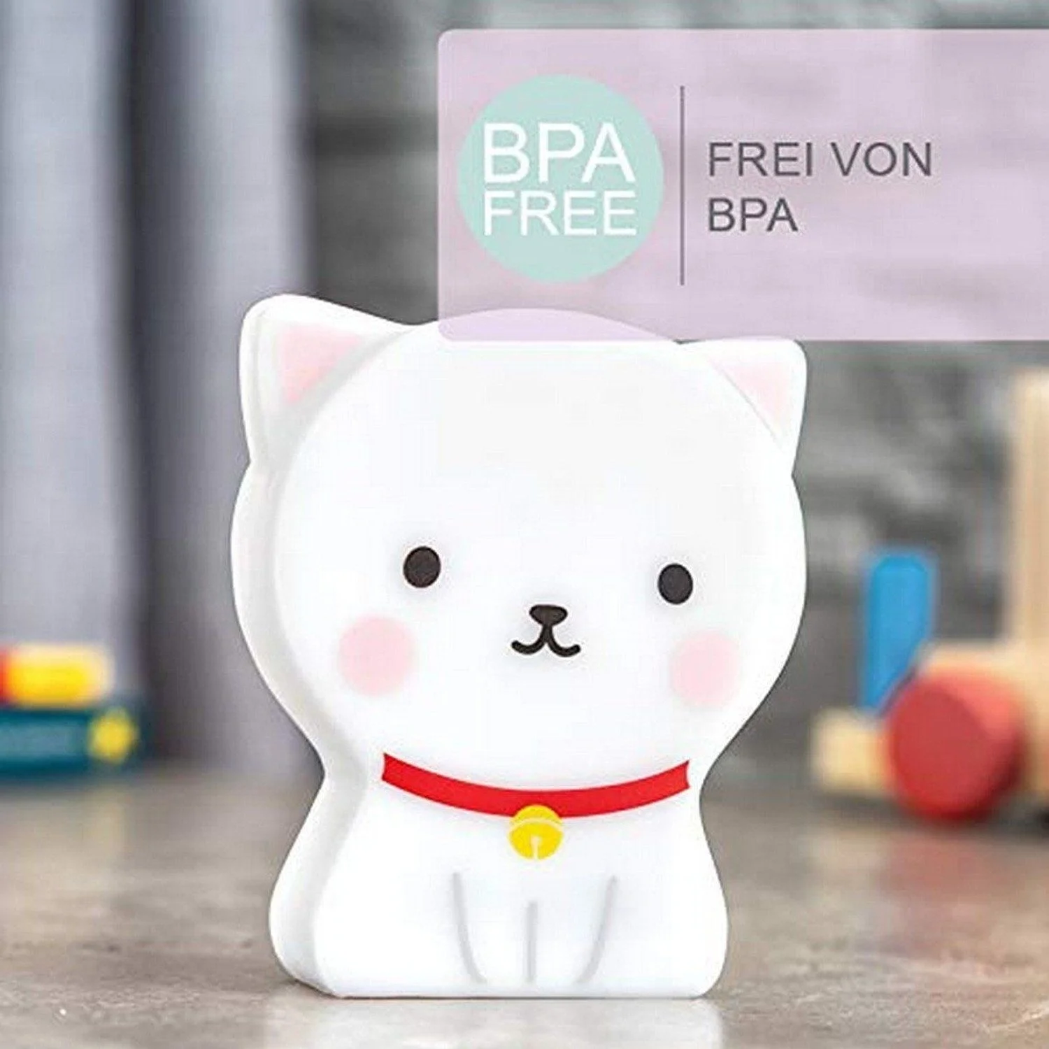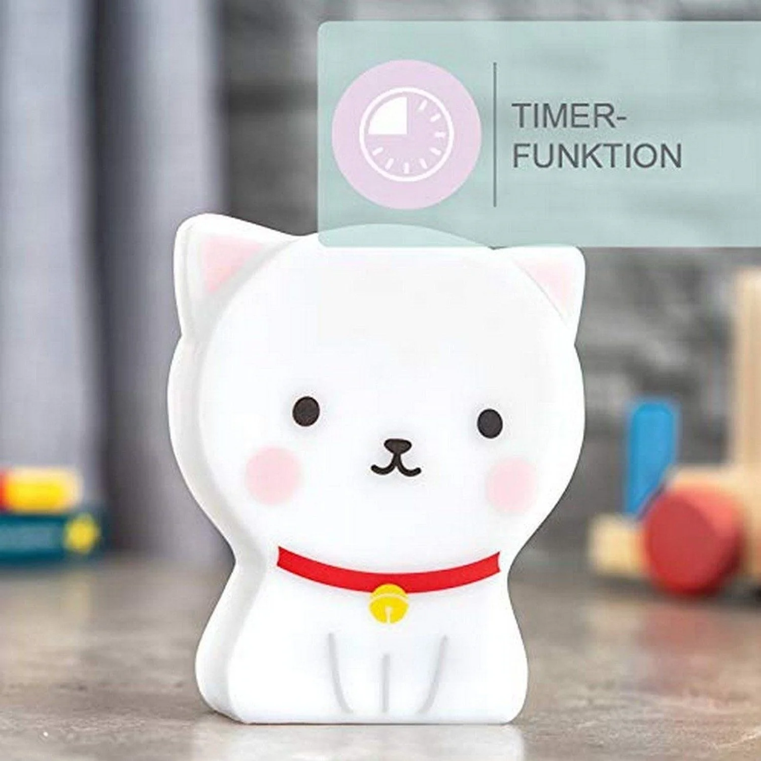 Highlights: Süßes Katzen-Design, Timer-Funktion, sichere Batterien, sanftes warmweißes Licht, abwaschbares Material, ideal für das Kinderzimmer.