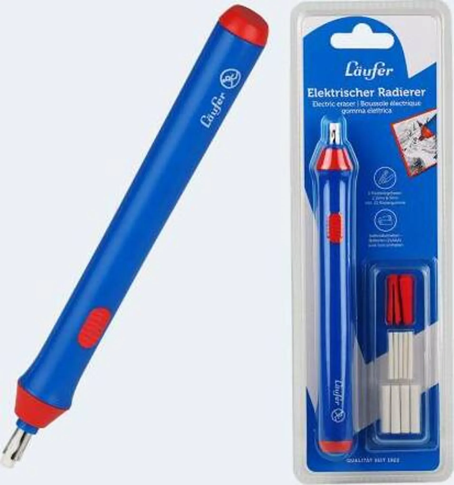 Produktinformationen "Läufer Elektrischer Radierer mit Wechselspitze – Blau inkl. 23 Kunststoff-Radierer"