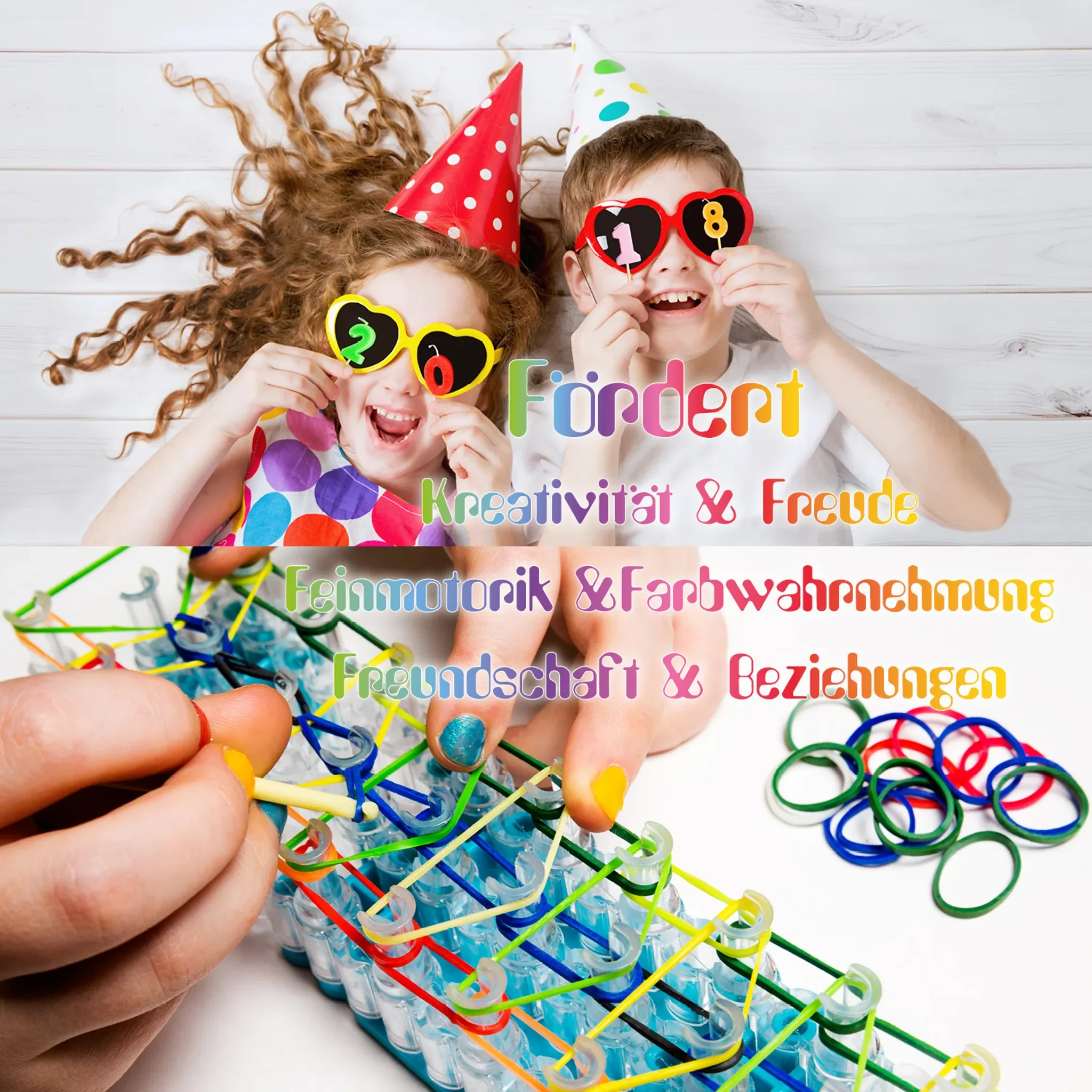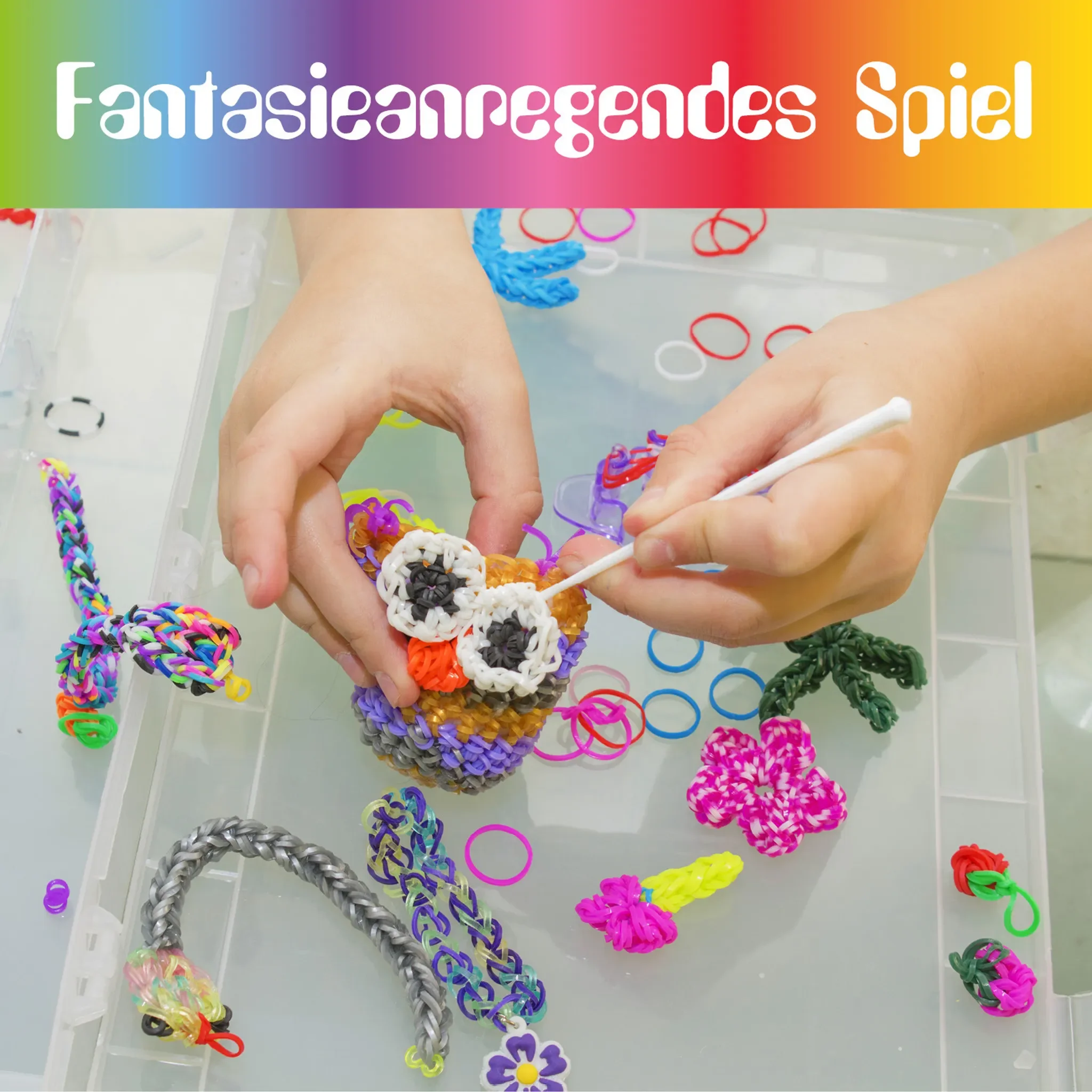 Highlights: Sehr umfangreiches Loom-Bands-Set, viele Farbvarianten für individuelle Designs, übersichtliche Sortierbox, fördert Kreativität und Feinmotorik, ideal für lange Bastelstunden und als Geschenk.