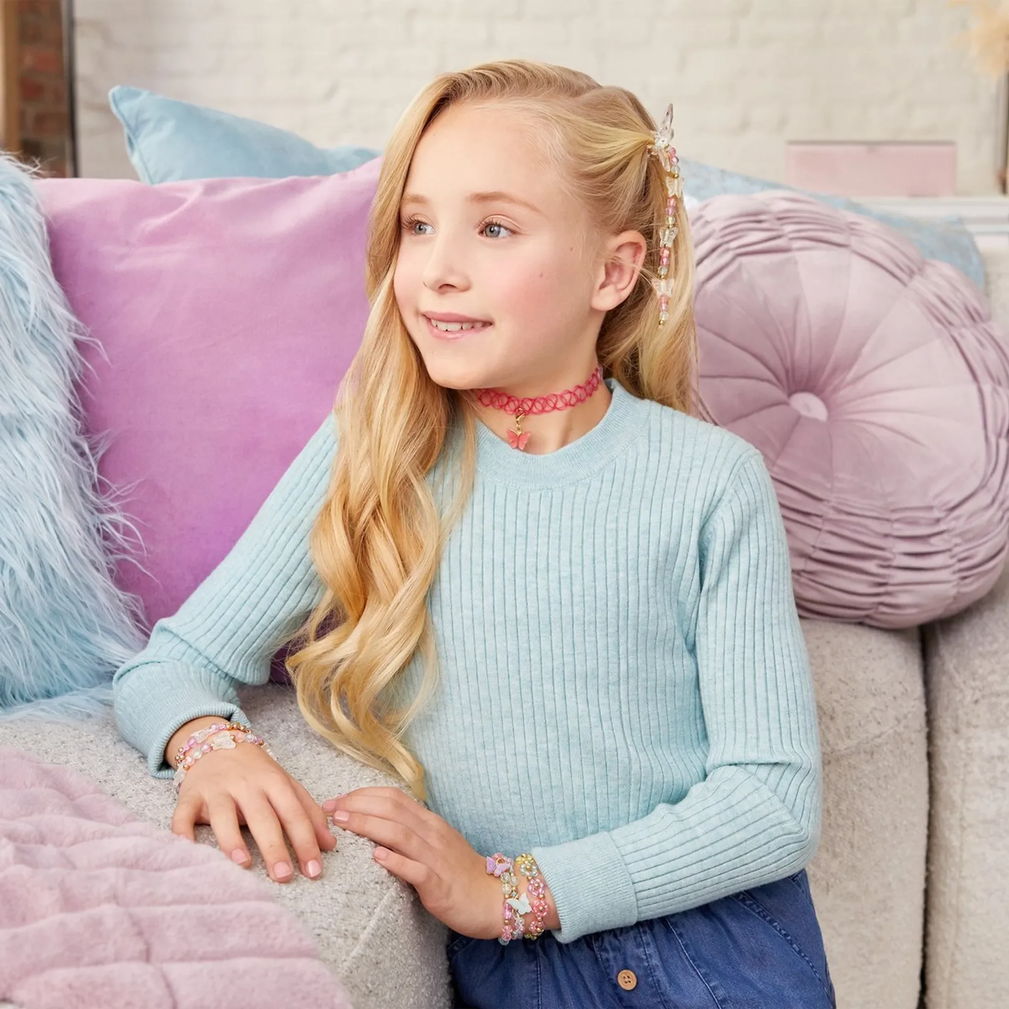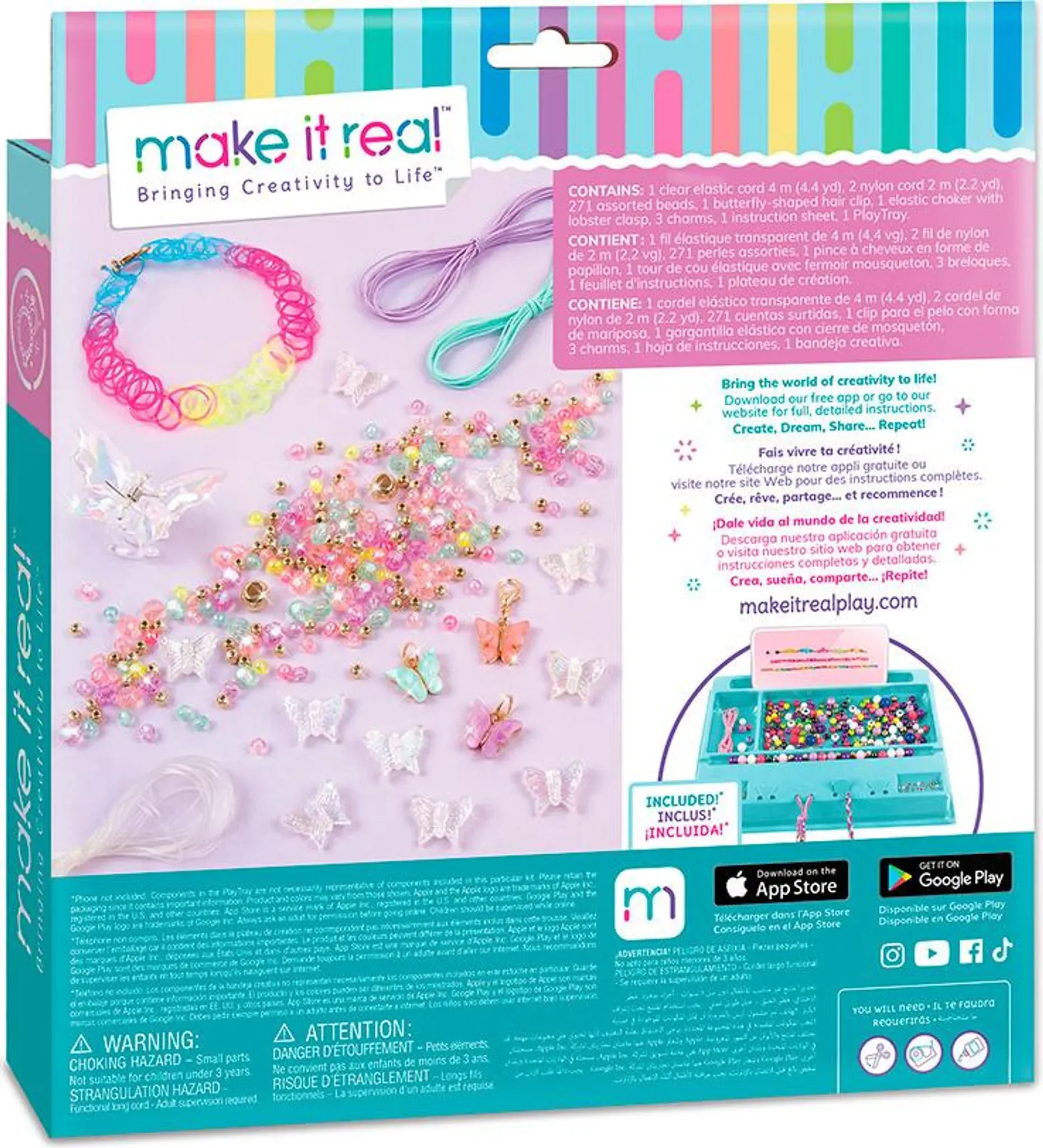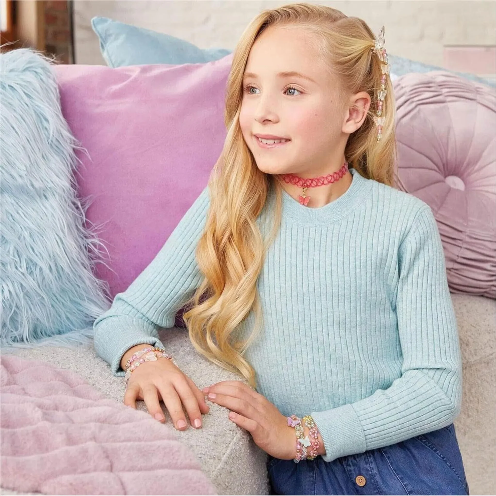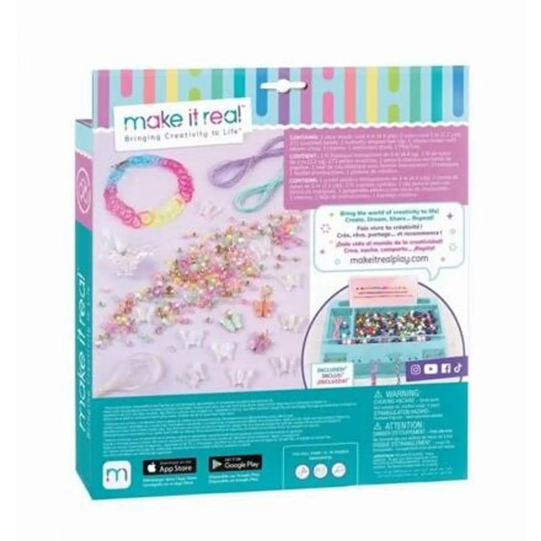 Mit dem Make It Real Schmuckset können Kinder ihre eigenen, wunderschönen Schmuckstücke gestalten. Das Set enthält alles, was für die Herstellung von 5 trendigen Armbändern, einer Halskette und einer niedlichen Schmetterlings-Haarspange benötigt wird. Es fördert nicht nur die Kreativität, sondern auch die Feinmotorik – der perfekte Einstieg in die Welt des Schmuckdesigns!
