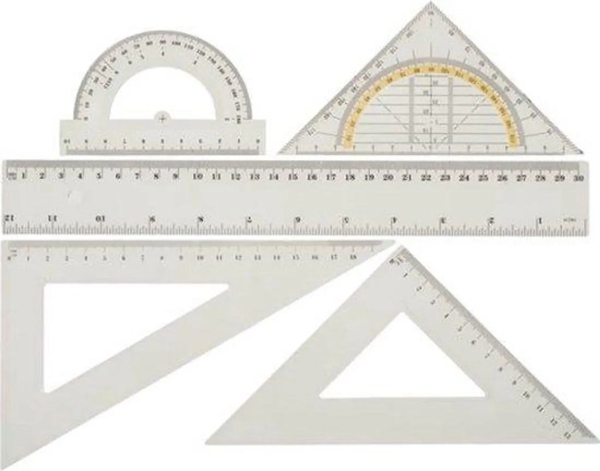 | Lieferumfang | 5-teiliges Set: 1 Lineal, 1 Geodreieck, 2 Zeichendreiecke, 1 Winkelmesser |
